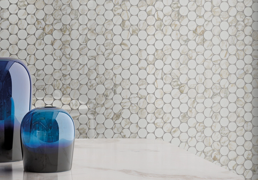 Charme Deluxe collection is rich in decorations, adding further value to the wide choice of surfaces. The uniqueness of tiles’ design is complemented by precious decors, like classic mosaics and Diamond mosaic with a lux finish and Split mosaic with a honed satin finish. A porcelain stoneware decor Strip reflects a marble pattern with formal linearity, while the sumptuousness of the Intarsio represents the collection’s pinnacle of luxury.