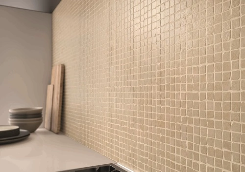 The Materia offers a wide range of decorations to give an expressive effect to interiors. Two decors in porcelain stoneware - Brick Multiline with textured elements and the classic Mosaic 30x30 together with two types of false mosaic for wall cladding - Roma with vintage pixels in three colours and the luxurious Gold and Platinum decor in 30x30 format with an incredible optical effect.