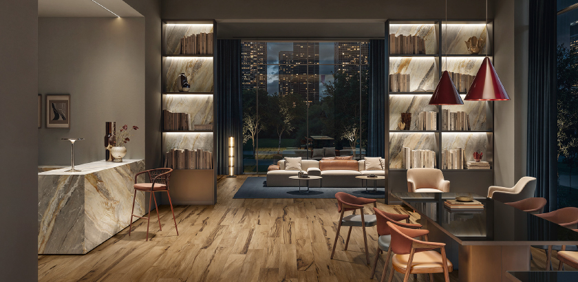 A partire dai 4 colori del legno, Aura esprime una selezione cromatica di assoluto valore, spaziando da superfici organiche a tinte piatte e trame decorative. Soluzioni armoniche che permettono di infondere totale distintività a ogni progetto d’interni.