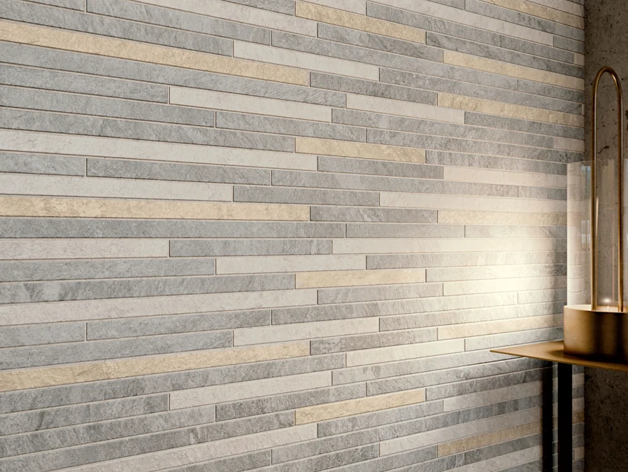 Nella gamma decorativa della collezione Climb rientra il classico mosaico in grès porcellanato in cinque colori e il mosaico Strip in tre varianti cromatiche, i mattoncini e il decoro tridimensionale Brick 3D. Per un design originale dell’esterno si propone Pavone X2 a forma di coda di pavone in tre colori. Ogni tipo di decoro è stato pensato per accentuare il disegno e la texture della quarzite naturale e portare i motivi naturali negli interni.