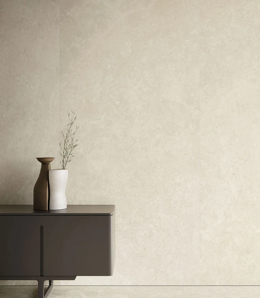 Il gres porcellanato dai toni chiari Royal Ivory è un’interessante soluzione per un living in puro stile minimalista. Le pareti e il pavimento, realizzati in un unico colore utilizzando formati diversi, evidenziano le qualità dell’illuminazione. La lastra effetto pietra, di grande formato 80х160 per la pavimentazione e in formato maxi 120х278 per le pareti, crea uno spazio monocromatico dalla marcata geometria. Royal Ivory è disponibile nei formati: 60х120, 80х80 e 80х160, 120х278 con finitura naturale.