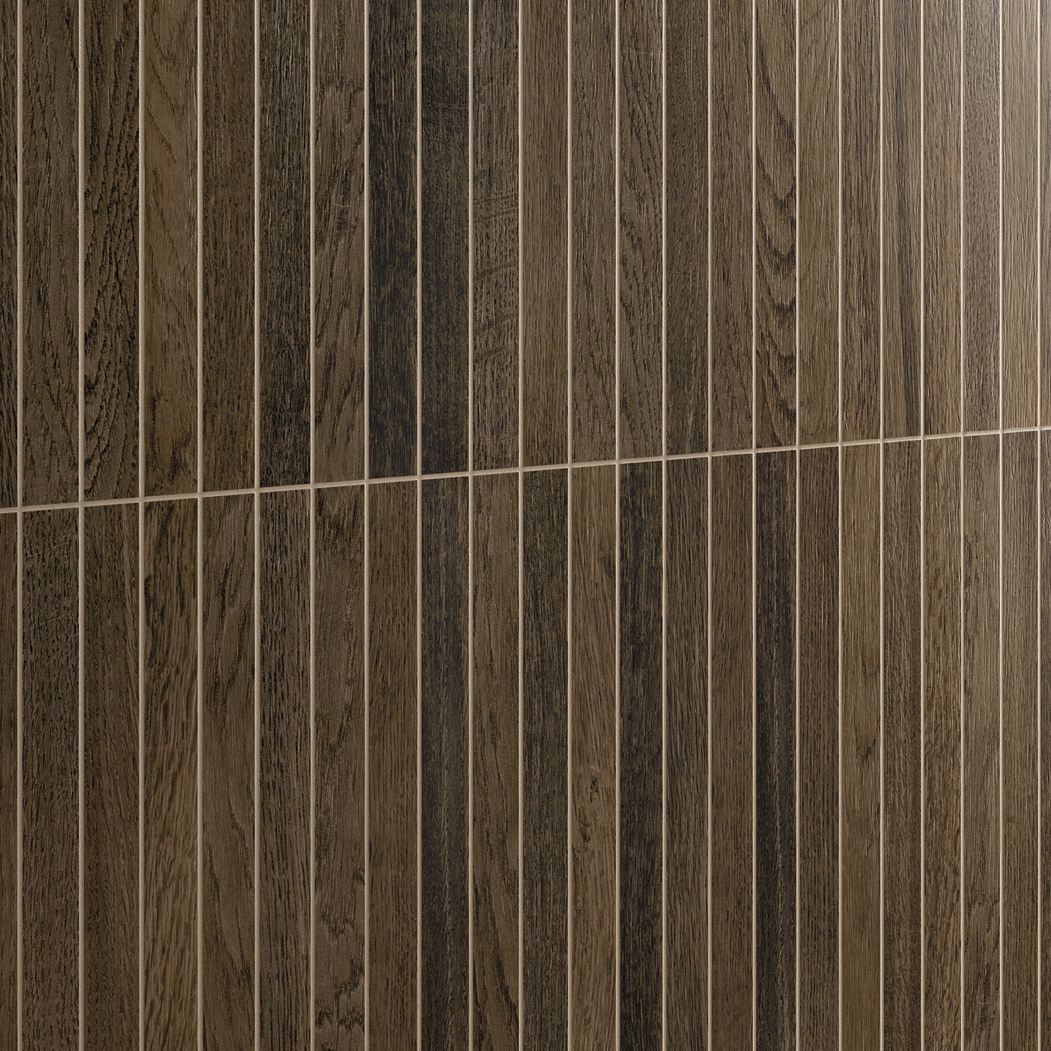 Декор с эффектом деревянных реек Татами в темном цвете Могано подчеркивает выразительность светлого интерьера и создает в нем атмосферу уюта. Татами . прекрасная основа для дизайна стильных и комфортных пространств, дизайн которых продуман до мелочей. Его минималистичная форма подчеркивает лаконичность материала и наполняет пространство теплом.